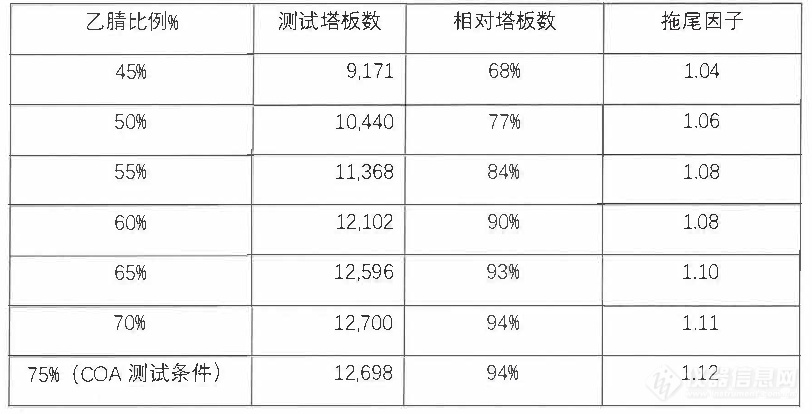 2. 流動相對柱效測試結果的影響