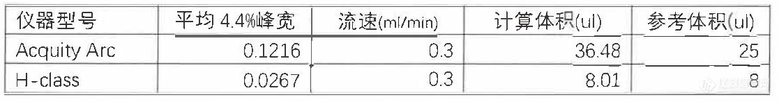 擴散體積位μL=4.4% 峰高處的三次平均峰寬(min)×流速(mL/min)×1000