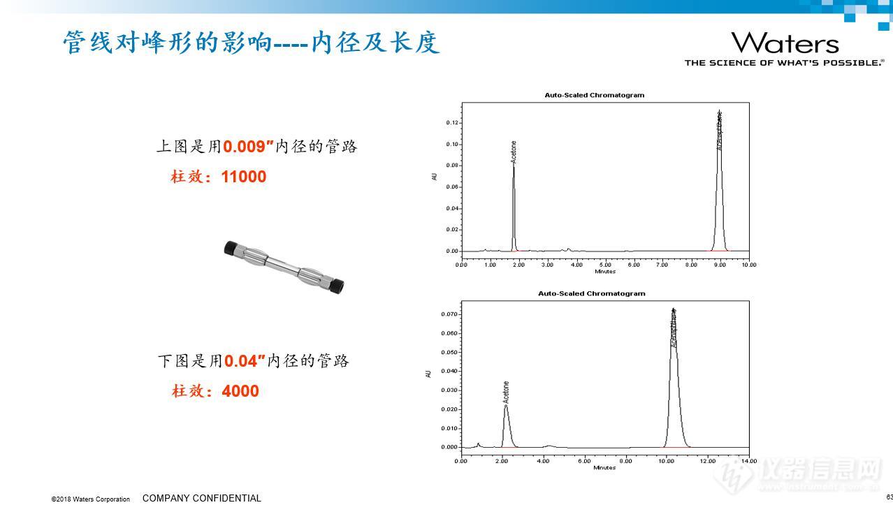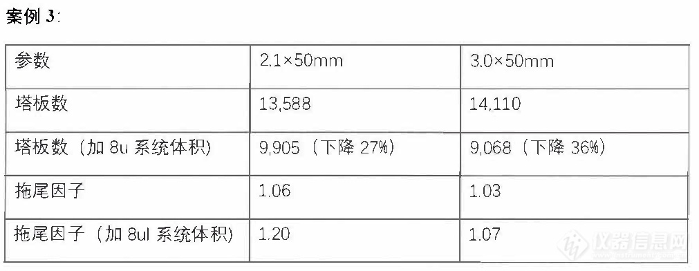 結論:死體積增加會降低柱效、會發生額外擴散、柱效降低。小內徑色譜柱(2.1mm)或體積較小的色譜柱受柱外體積影響,對柱效的影響更大。