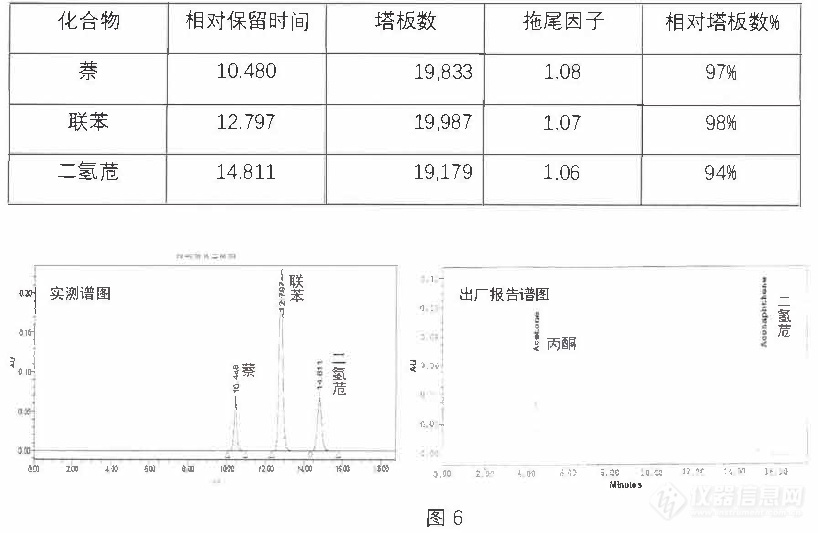 不同廠家,不同類型的色譜柱其柱效測試的化合物各不相同,如反相色譜柱可選苯、荼、苊等各種類型的檢測方法,盡量采用與廠家相同的化合物測試。