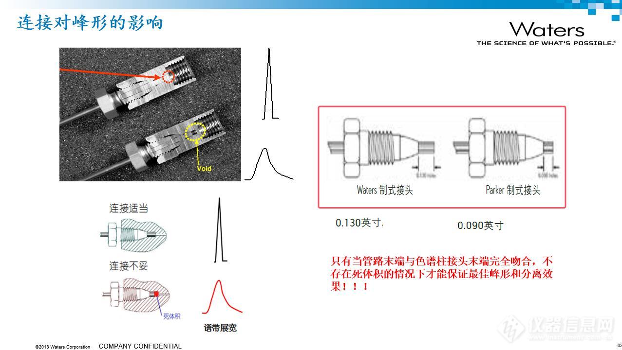 注:關注儀器的死體積情況,盡量選擇死體積小的連接管路和檢測器流通池,尤其是在使用小規格色譜柱時。